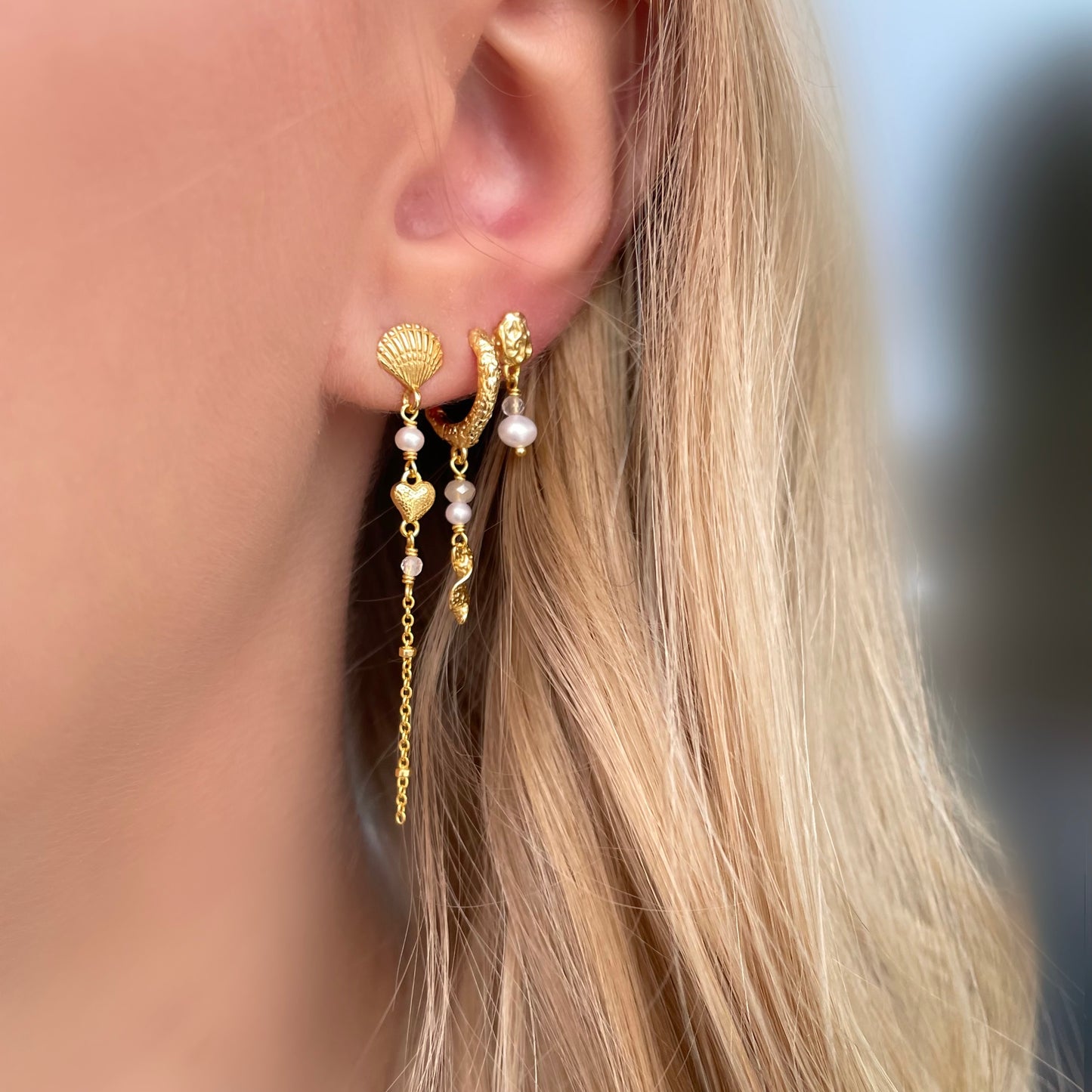 Vores håndlavede Mariel øreringene bringer et strejf af havets magi til din stil. Disse øreringe er lavet i 18 karat forgyldt sterling sølv.